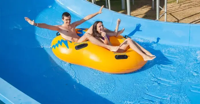 Slide through twisting tunnels on a double or single inflatable tube. These fast-paced rides take you through curves and drops, ending with a splash in the pool. Ideal for teens and adults looking for classic water park fun.