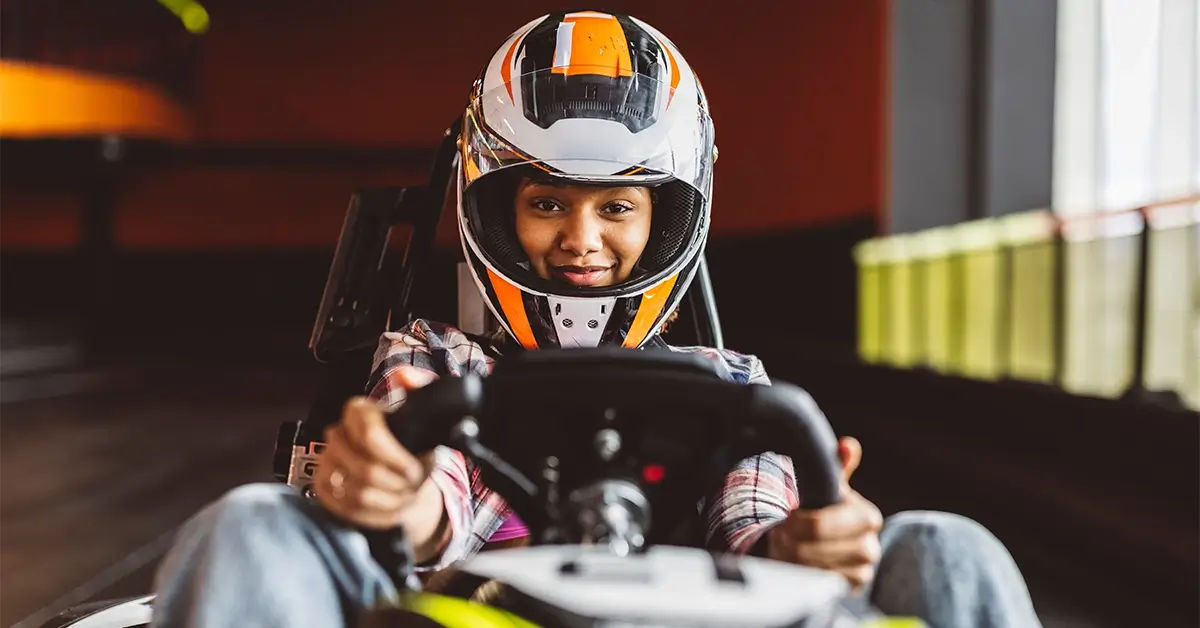 Race around a city-themed outdoor go-kart track designed for both kids and adults. The track features sharp turns and straight lanes for speed. Safety gear is provided and drivers must meet minimum height requirements.