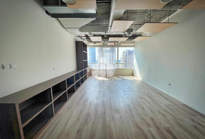 OFFICES FOR RENT IN LUSAIL RESIDENCENestled in the heart of the dynamic Marina District of Lusail City, this contemporary office space promises a blend of comfort and professional vibrancy. The interior boasts an open-plan layout with ample natural light, thanks to the floor-to-ceiling windows that offer an inspiring view of the bustling cityscape. The space is finished with a sophisticated touch, featuring a sleek wooden bookshelf that spans the length of the room, and an industrial-chic exposed ceiling that gives the office a modern, creative edge.